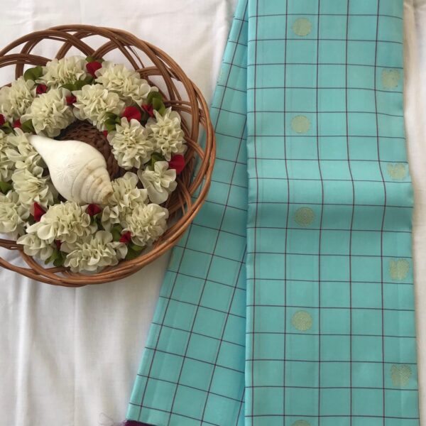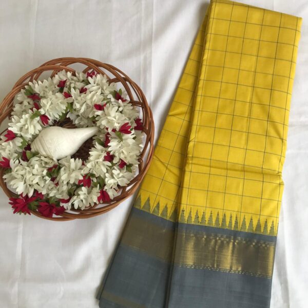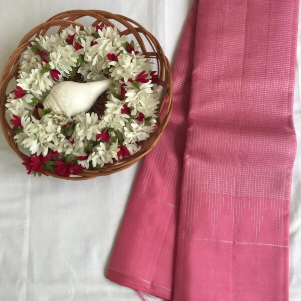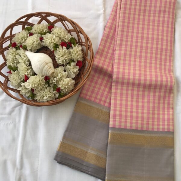 Borderless Kanchi Silk in kattam design with contrast pallu, blouse.
