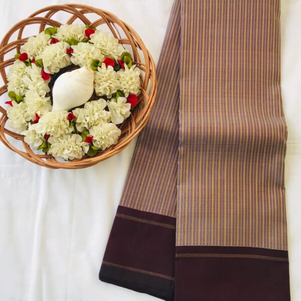 • Kanchipuram silk saree in veldhari design Kanchipuram silk saree in veldhari design ₹16,200.00