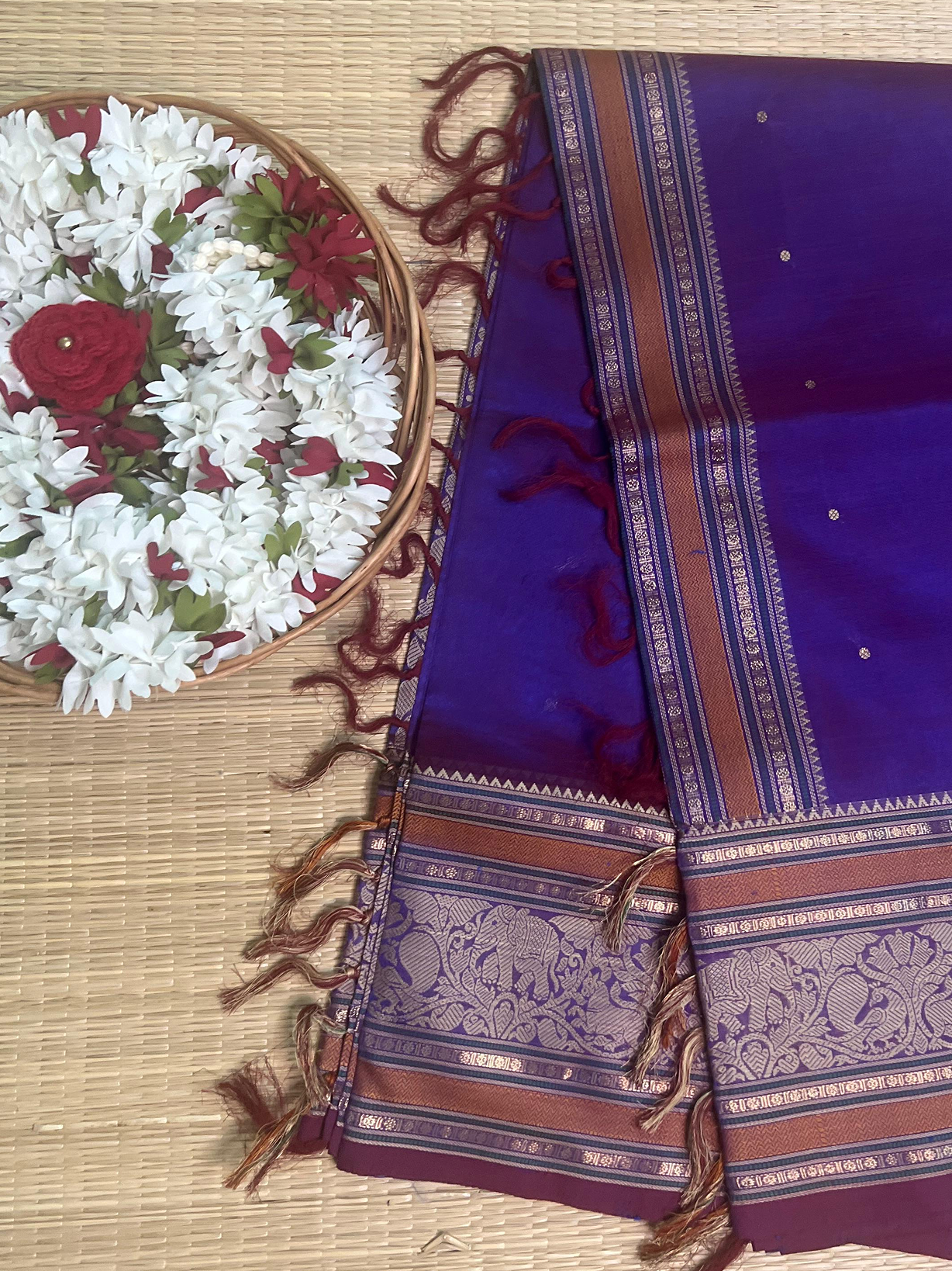 Home Silk Cotton Sarees Dark violet silk cotton saree with thread work