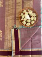 Small border kanchi cotton in brown colour with horizontal lines