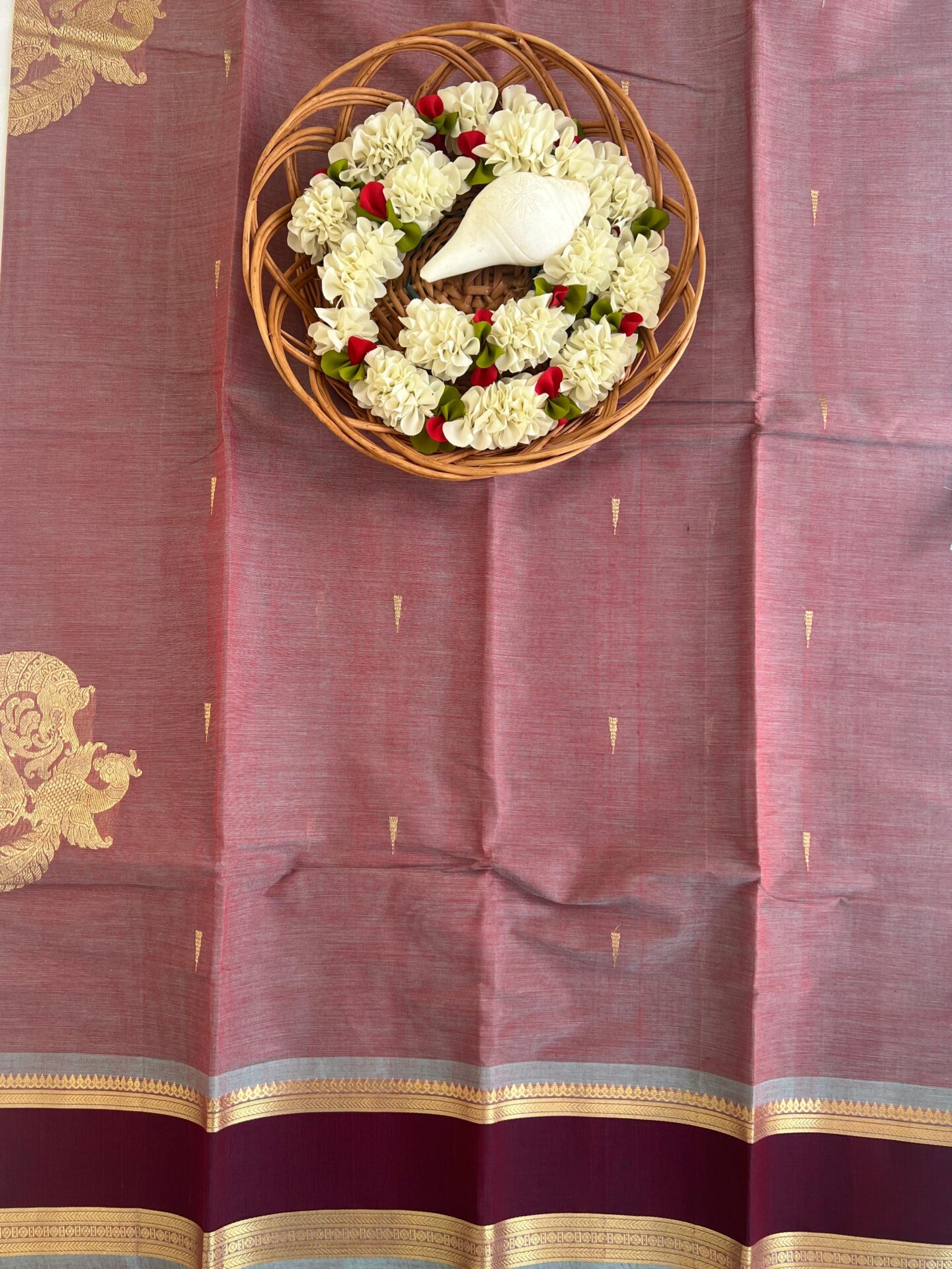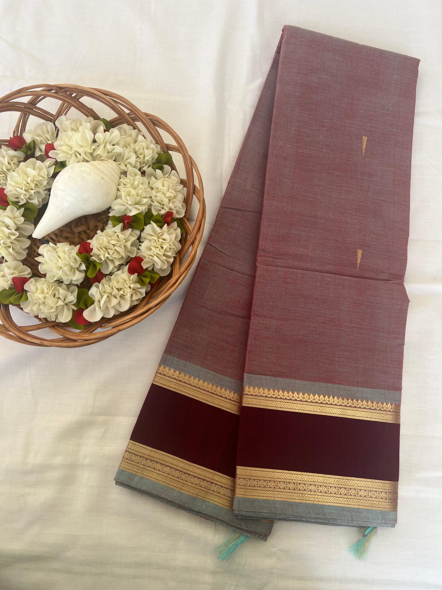 Maroon with green kanchi cotton saree