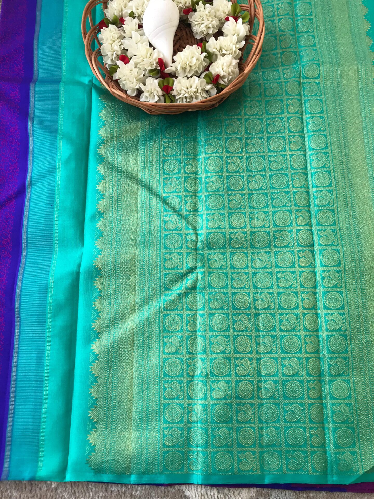 – Pure zari borders & intricately woven pallu