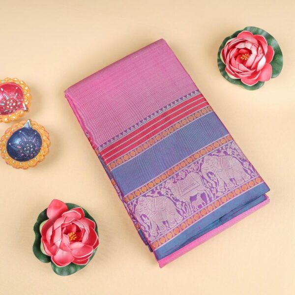 Traditional kanchipuram silk saree in kattam design – Navapazhlam colour