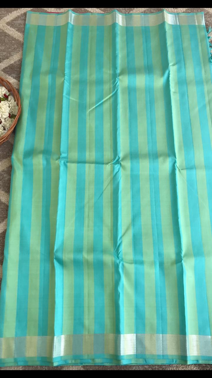 Home Kanchipuram Silk Sarees Silver tissue border Kanchipuram silk saree with contrast pallu