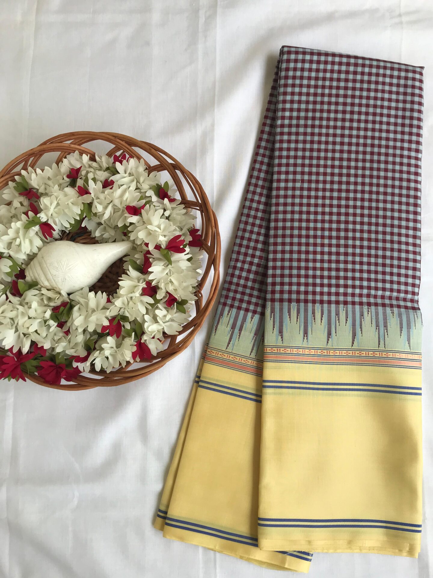Kanchipuram silk in bold checks & korvai design