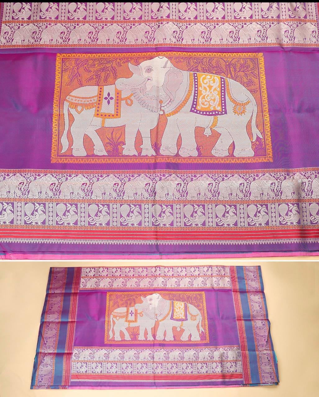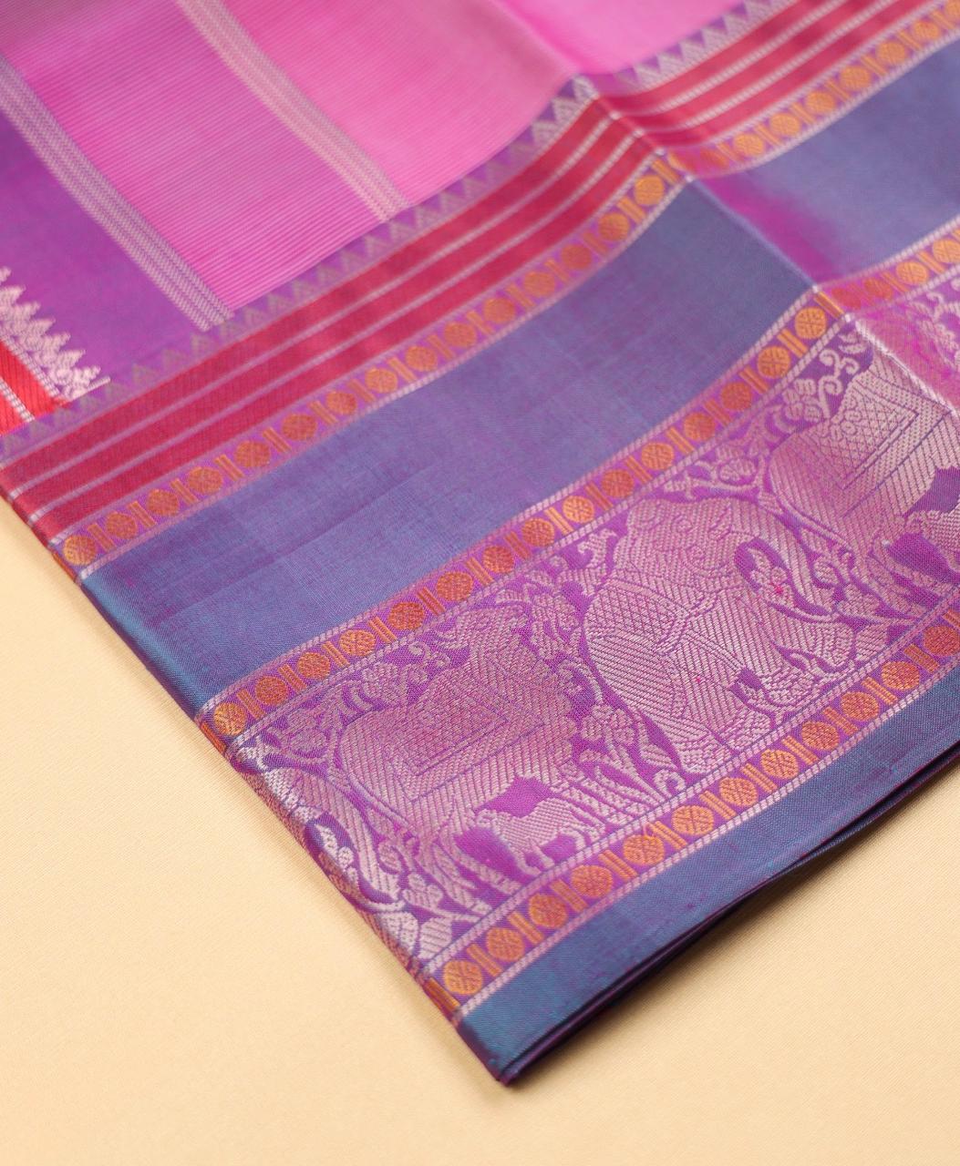 Korvai design Kanchipuram silk saree in contrast colour.