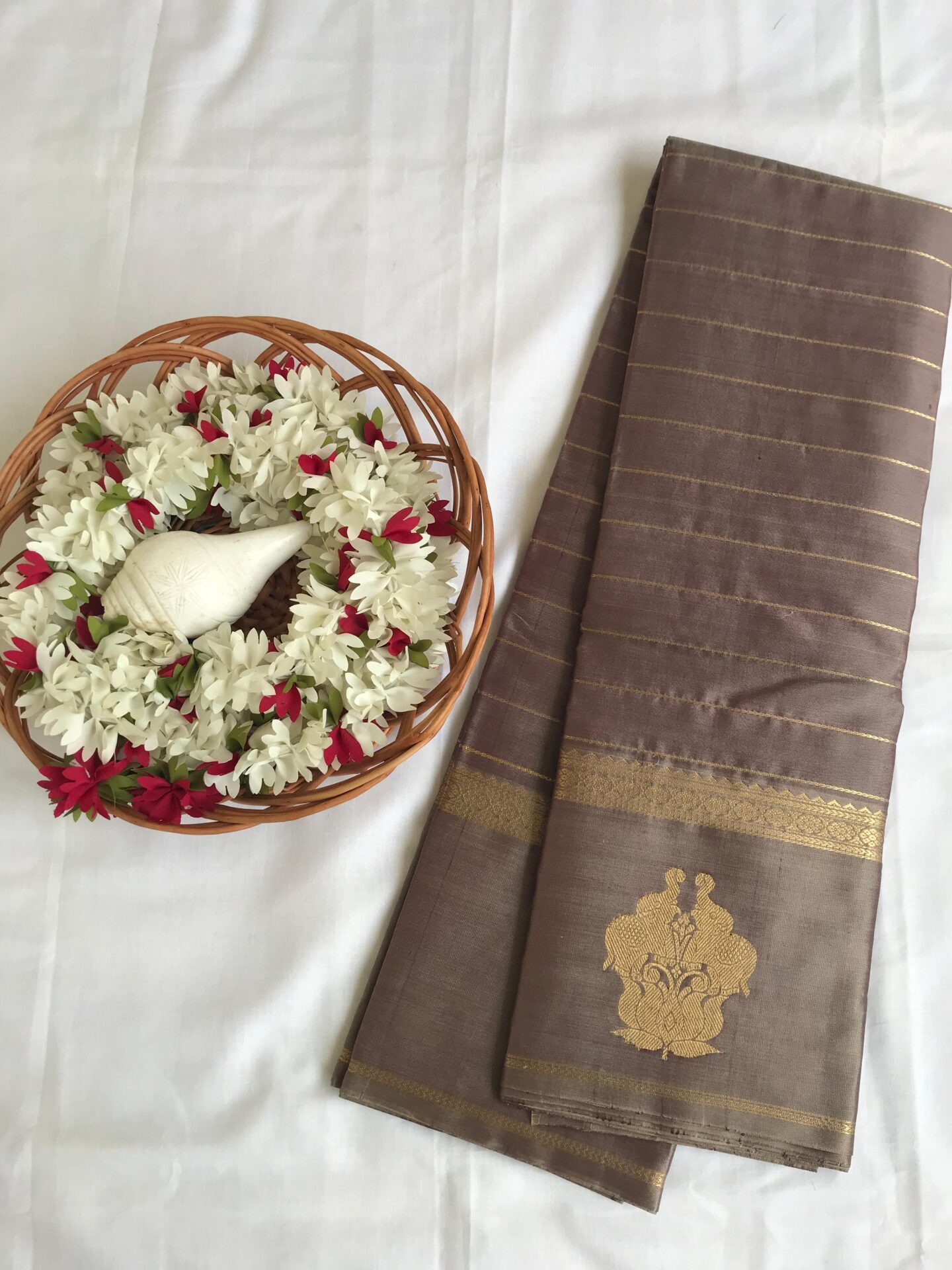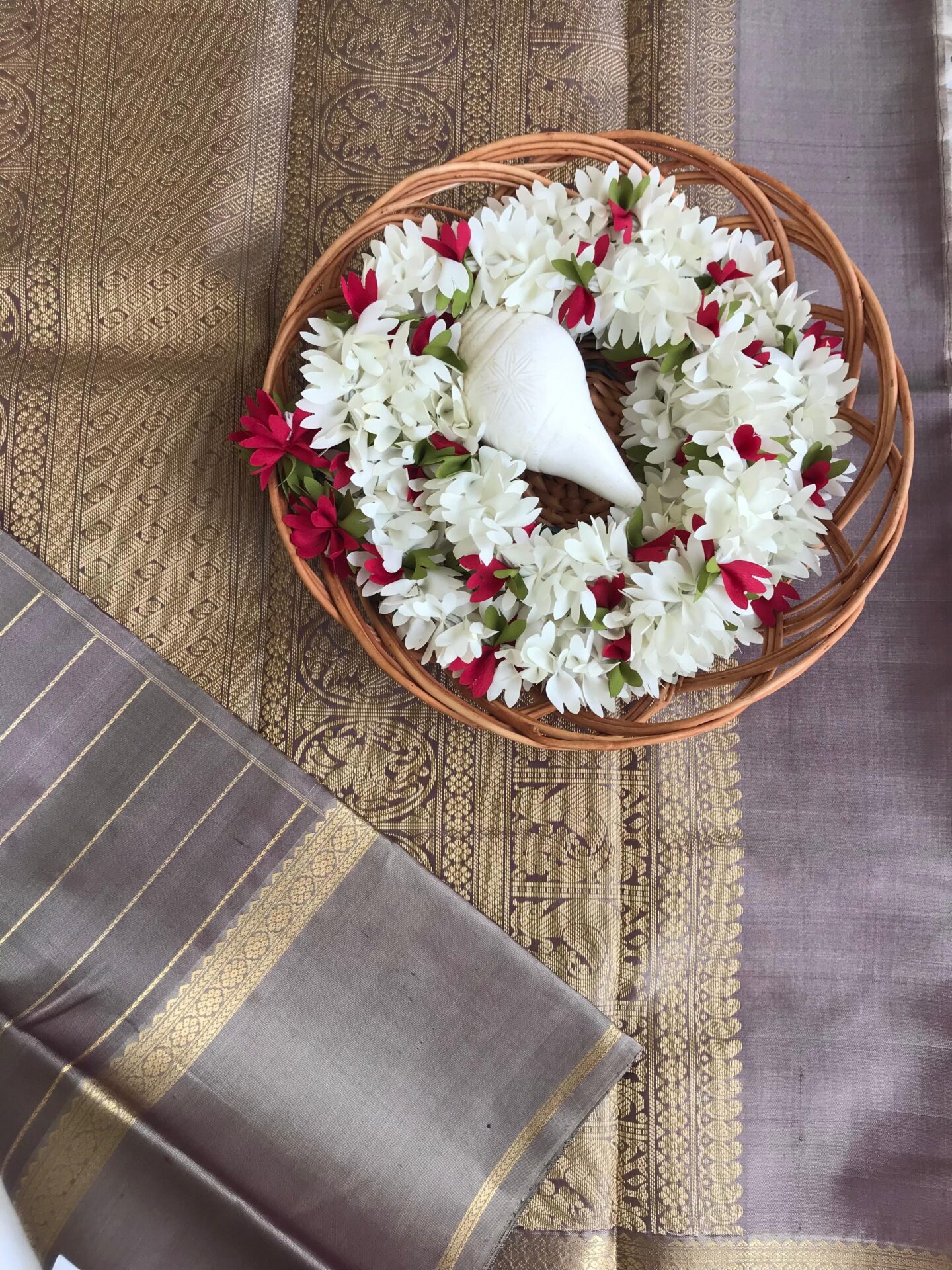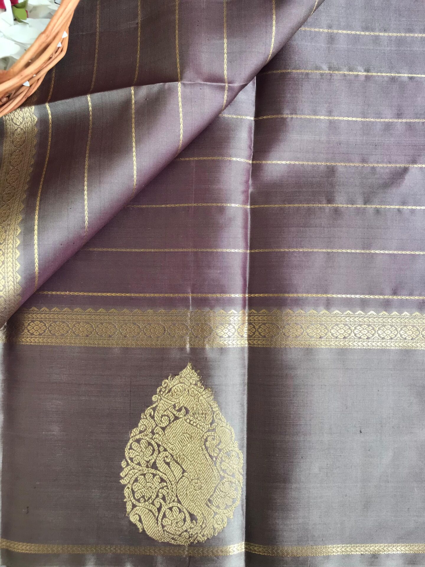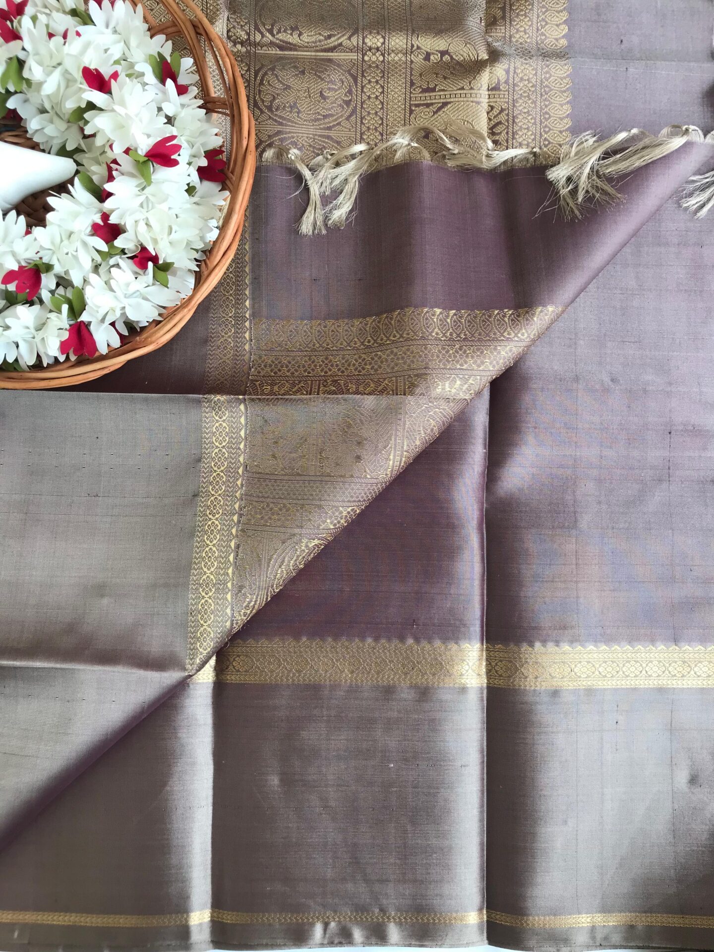 long turning border kanchi silk in ash with contrast pallu