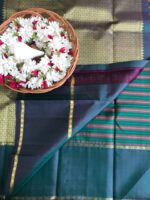 Traditional kanchipuram silk saree in kattam design – Navapazhlam colour