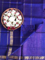 silk cotton saree in rich navy blue with green rettaipet border ₹6,300.00