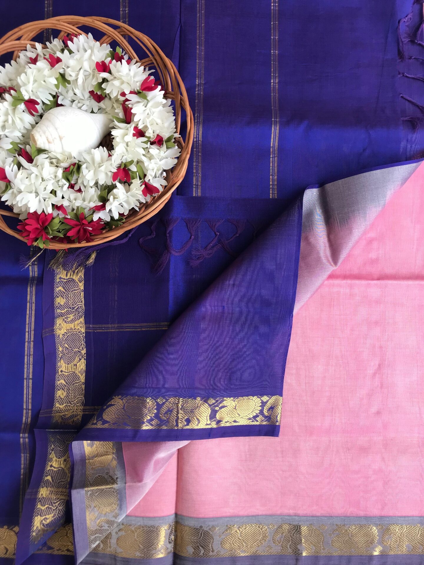 Home Silk Cotton Sarees silk cotton saree in pink with blue combo