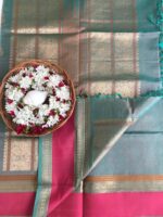 silk cotton saree in rich navy blue with green rettaipet border ₹6,300.00