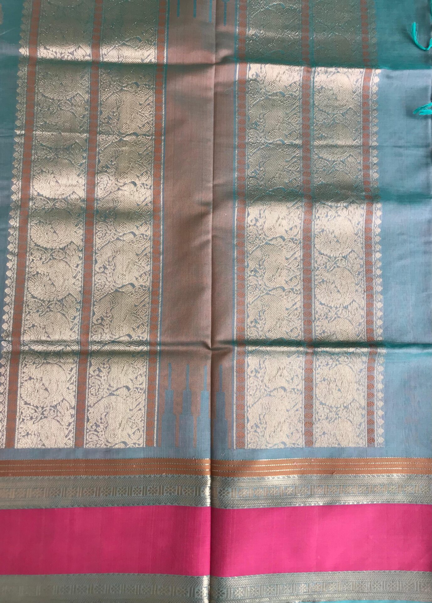 silk cotton saree in pink with blue combo