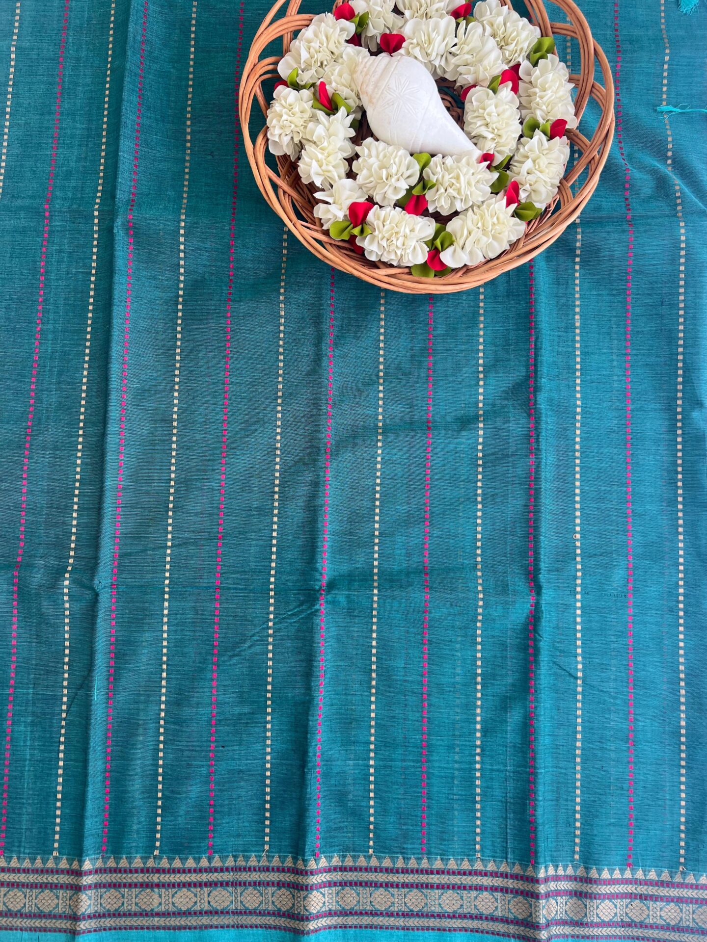 Thread work with horizantal lines in green colour