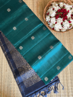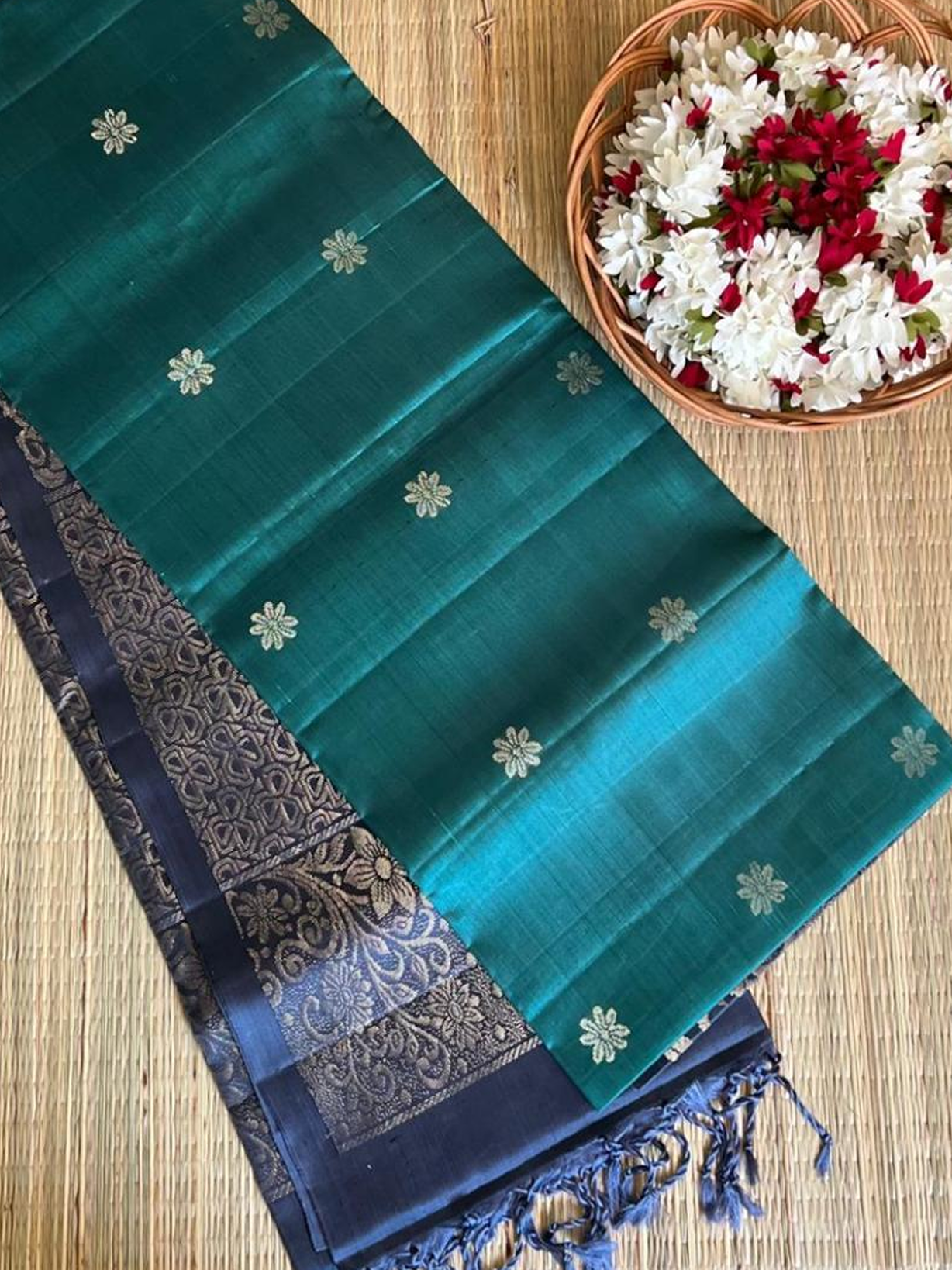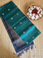 Home Soft Silk Sarees Turning border soft silk saree in bluish green colour.