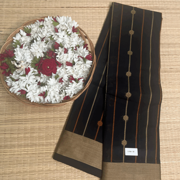 Black colour kanchi cotton saree with horizontal lines allover the body