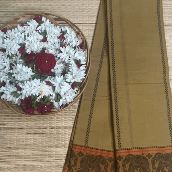 • Traditional kanchipuram silk saree in kattam design - Navapazhlam colour Traditional kanchipuram silk saree in kattam design - Navapazhlam colour ₹16,000.00