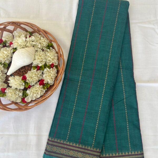 Traditional kanchipuram silk saree in kattam design – Navapazhlam colour